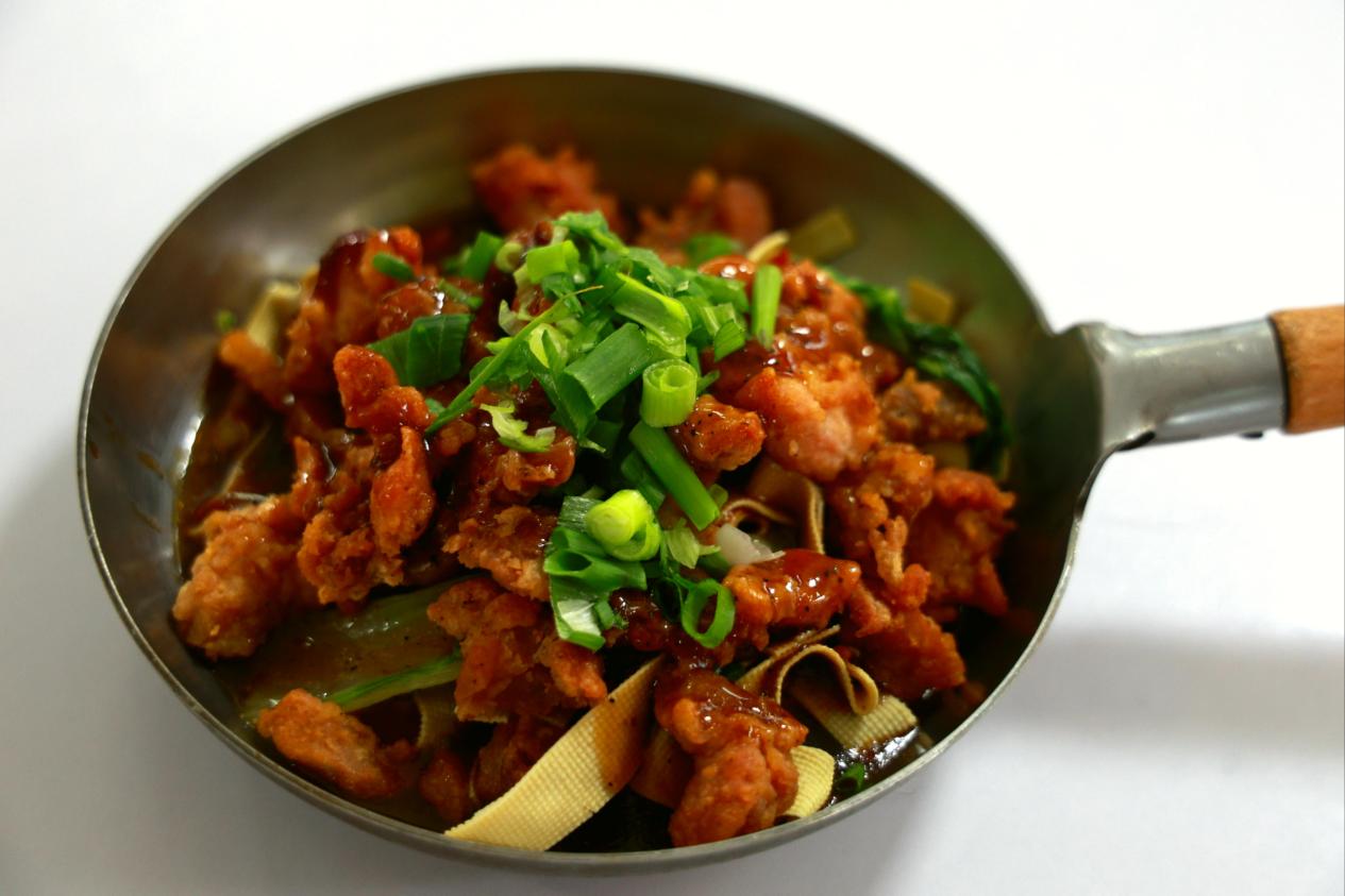 元气鲍汁钢锅鸡:外酥里嫩的鸡肉搭配浓郁十足的酱汁,量多味足,吃完之后超满足。(位置:第一餐厅一楼8号窗口)