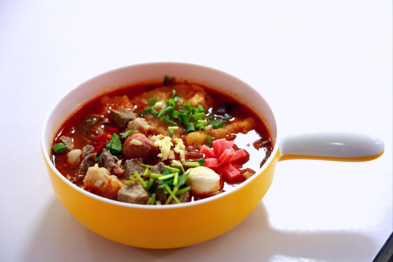 番茄牛腩锅:牛腩炖煮得恰到好处,搭配番茄汤汁,多种食材汇聚,给味蕾带来不一样的满足。(位置:第一餐厅一楼5号窗口)