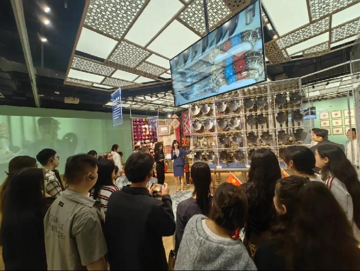 新疆维吾尔自治区非物质文化遗产馆成了同学们“沉浸式了解新疆”的课堂:维吾尔族刺绣的艳丽纹样,哈萨克族毡房营造的智慧,柯尔克孜族玛纳斯的史诗魅力……大家围着展柜,听得格外专注。