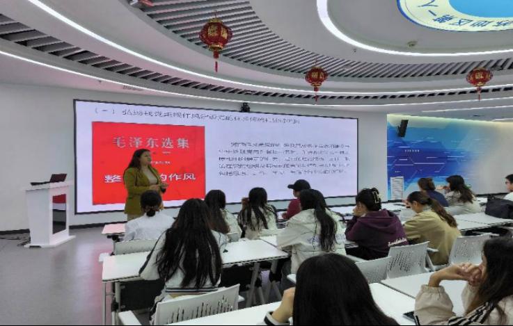 ▲工作组为实习生讲授“持续推进党的作风建设”专题思政课。
