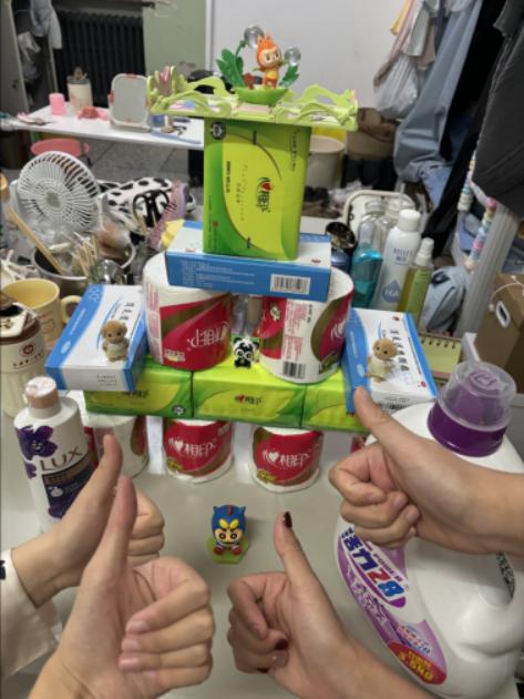▲工作组为实习生和分流教学学生送上生活用品。