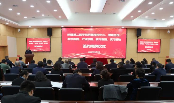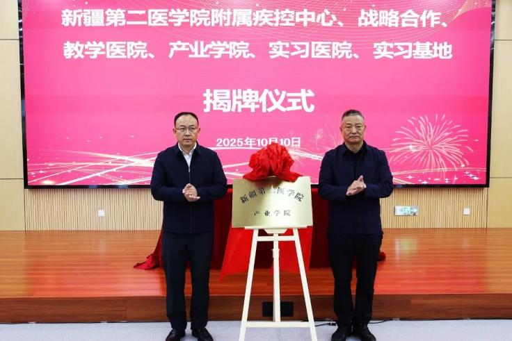 会上,李建光与各合作单位代表分别签订了附属疾控中心、战略合作、教学医院、产业学院、实习医院、实习基地协议;与乌鲁木齐市疾病预防控制中心代表揭牌附属疾控中心;与克拉玛依市独山子人民医院、兵团第十三师红星医院、克拉玛依市第二人民医院代表揭牌教学医院;与克拉玛依市公安局代表揭牌产业学院。
