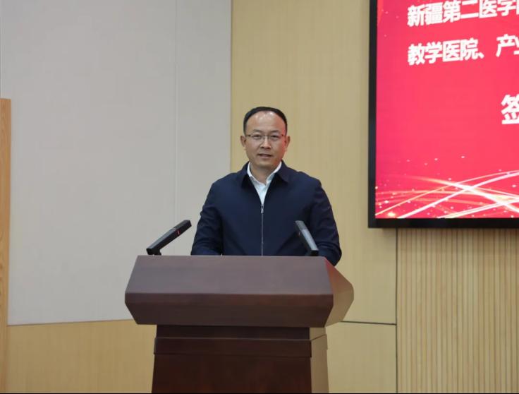 李建光在讲话中表示,近年来,学校各项事业稳步发展,在人才培养、对外合作、社会服务等方面取得了显著成果。学校始终将与实践教学基地的深度合作置于发展战略的重要位置,大力推行“早临床、多临床、反复临床”“早实践、多实践、反复实践”“早动手、多动手、反复动手”的培养模式,最终为卫生健康事业培养出更多“下得去、用得上、留得住、干得好”的高素质、应用型人才。未来,学校将坚持“创新机制、深度融合”的合作方向,携手合作单位切实实现“1+1>2”的协同效应,为新疆医学教育和医疗卫生事业高质量发展贡献力量。