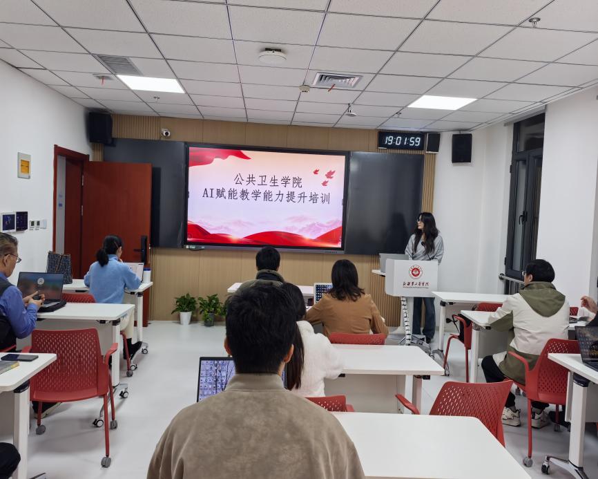▲11月26日,在培训现场,公共卫生学院教师齐聚一堂