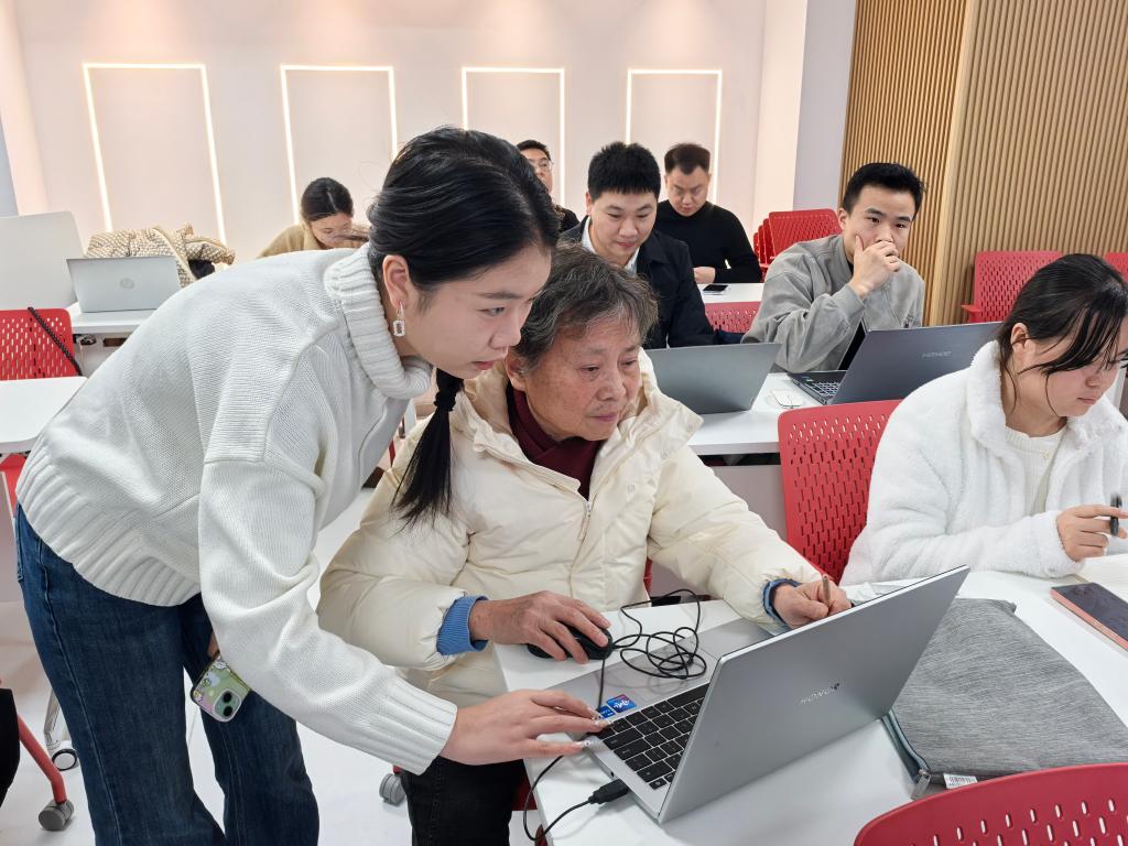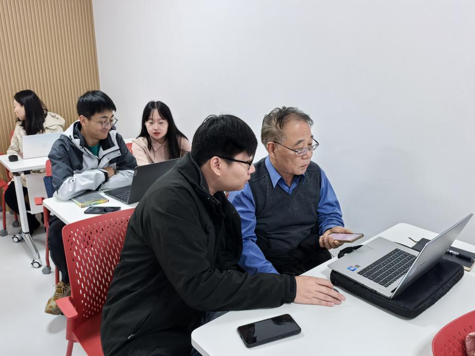 ▲场助老师耐心为银龄专家讲解
