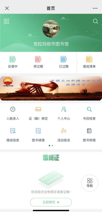 附注:我院读者可在“克拉玛依市图书馆”微信公众号“微服务大厅”首页绑定借阅证,证号和密码为通过支付宝注册的身份证号及之前设置的6位数数字密码。后续可通过此页面的“图书续借”功能进行续借。