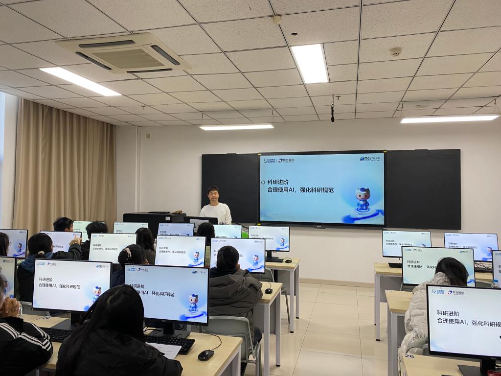 为帮助学生合理运用AI工具提升科研效率、坚守学术规范,11月19日,一场主题为“科研进阶-合理使用AI,强化科研规范”的专题讲座成功举办。本次讲座由中国知网资深讲师主讲,吸引了约50名学生现场参与,干货满满,反响热烈。