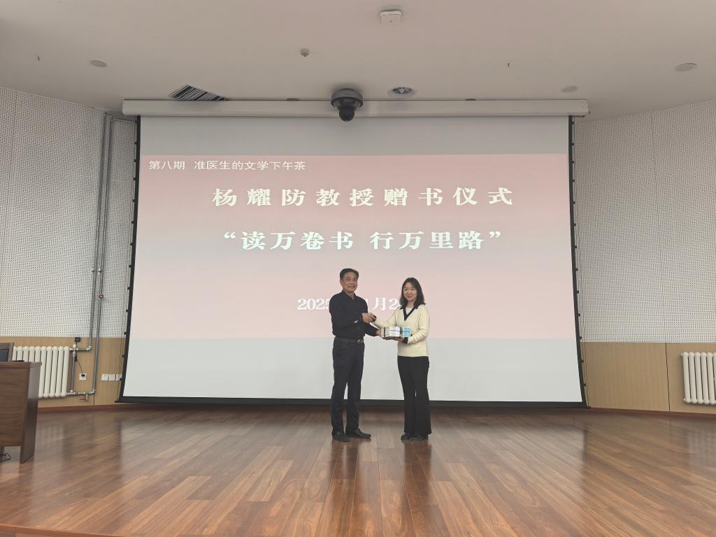 为丰富校园文化底蕴,搭建学术交流桥梁,引导师生在阅读中启迪智慧,由校图书馆、校团委联合主办,学校静嘉书社承办,11月26日“准医生的文学下午茶”第八期——杨耀防教授赠书仪式暨“读万卷书行万里路”主题讲座活动圆满落幕。本次活动以书香为媒,汇聚思想力量,为师生带来了一场兼具知识厚度与人生启迪的文化盛宴。