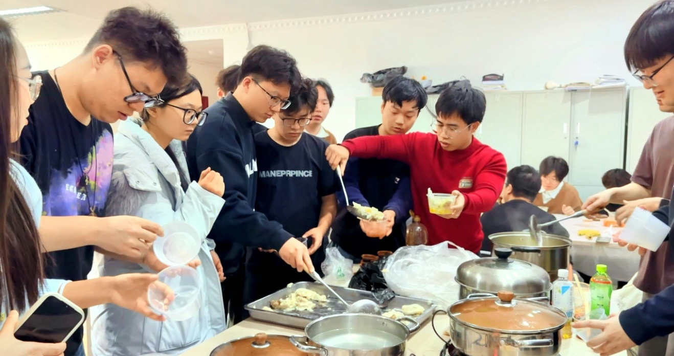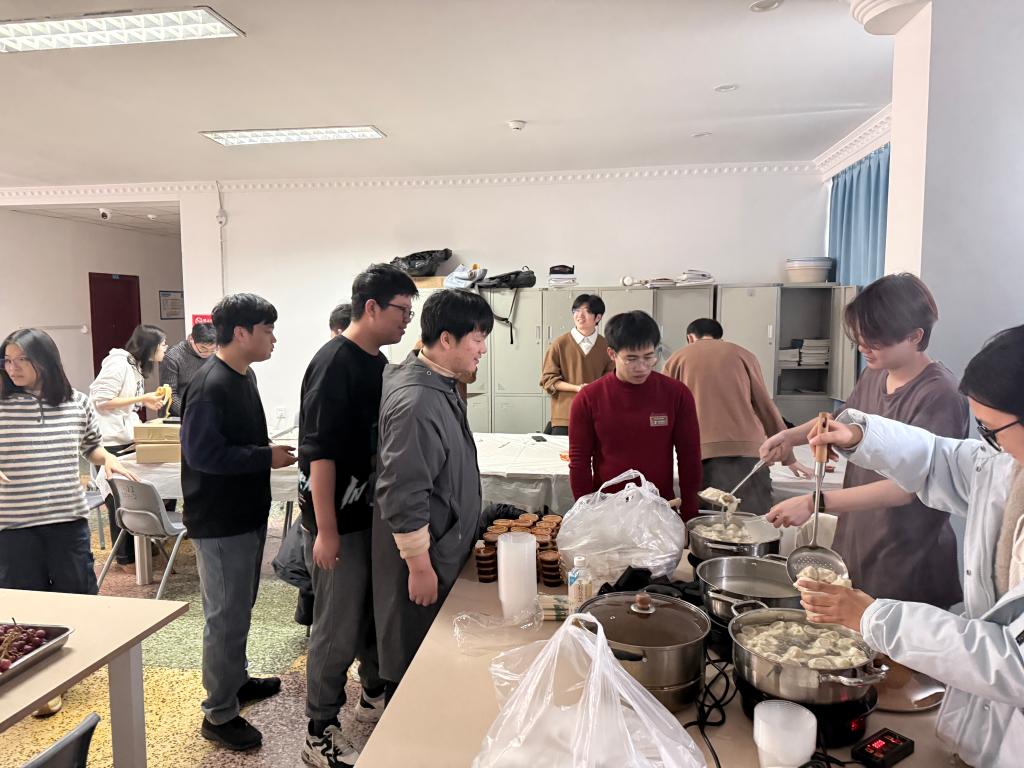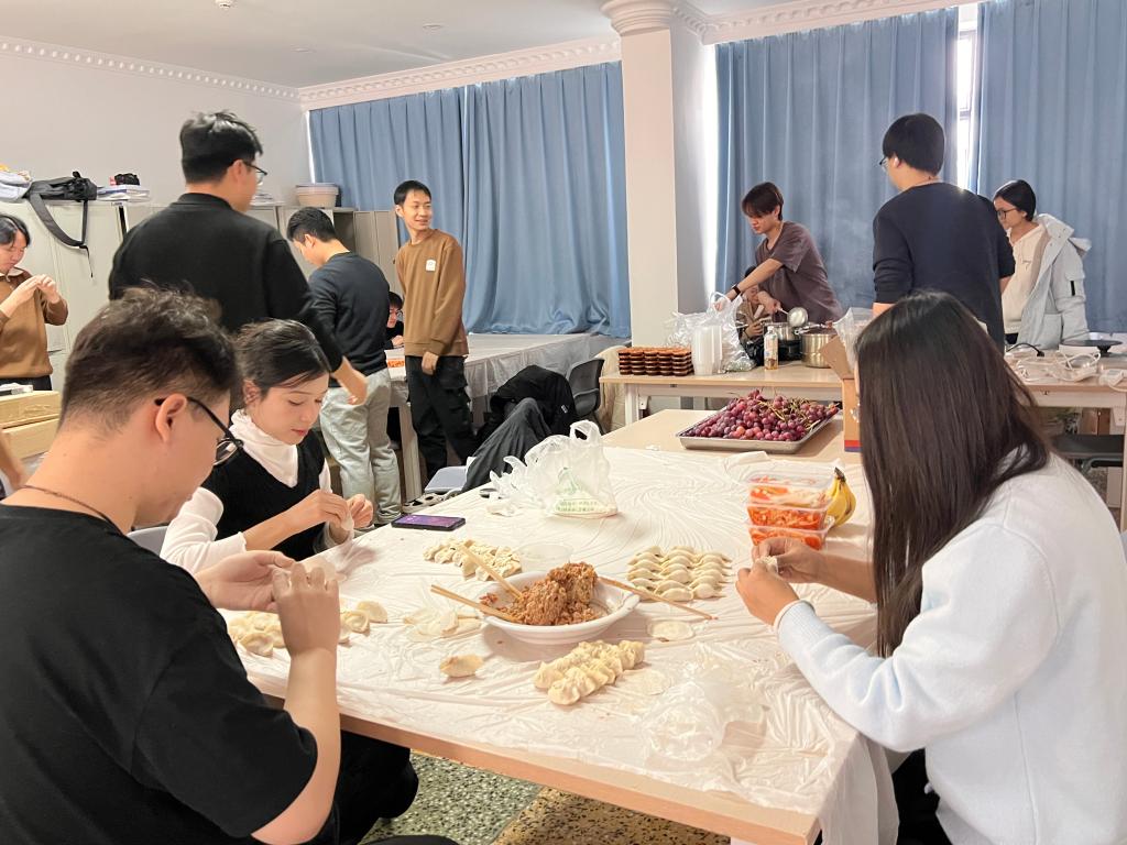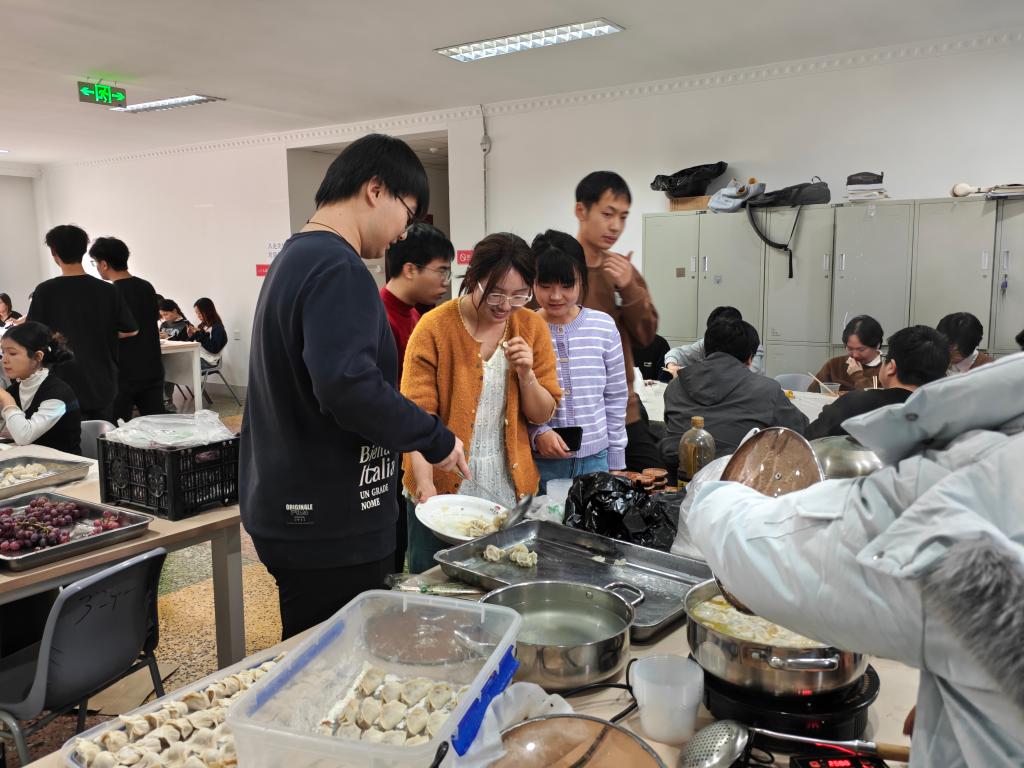 活动现场,各族学子围桌而坐,和面、擀皮、包馅、捏边,动作娴熟者手把手传授技巧,初学乍练者小心翼翼摸索尝试。柳叶饺、月牙饺、元宝饺……不同形状的饺子在指尖诞生,承载着各地民俗风情,更凝聚着“一家亲”的深厚情谊。来自全国各地、各民族的同学分享来自各自家乡的冬至节气习俗,各专业学生间的相互交流、各地域文化的碰撞,让小小的自习室成为铸牢中华民族共同体意识的生动课堂。